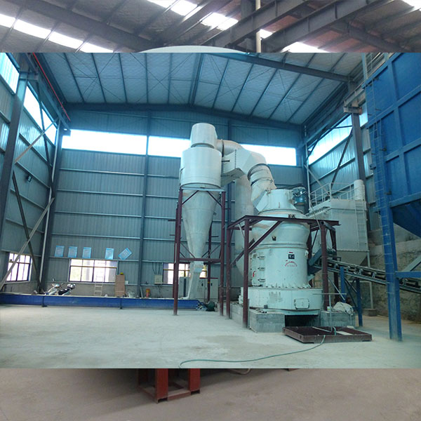 該機工作時需配備破碎機、提升機、儲料倉、電磁振動給料機及電器控制柜等附助裝置。大塊物料經破碎機破碎后,由提升機送至儲料倉,再由振動給料機將物料均勻地送入主機磨室內,進入磨室內的物料被鏟刀鏟起進入磨輥與磨環之間被碾碎、鼓風機將空氣從分流盤吹入研磨室,把粉碎粉末送到分析室內、經過由調速電機通過傳動裝置帶動旋轉的分析葉輪的分選,大顆粒物料落回磨室、重新研磨、合格的細粉末隨氣流進入成品旋風集粉器,與空氣分離后,從卸料口排出為成品。回氣從集粉器上端的回風管返回風機在負壓下循環。循環風路多余的風量進入廢氣管道由除塵系統進行凈化處理后,排入大氣。